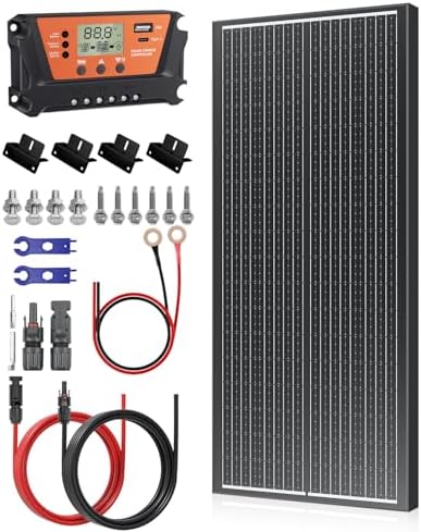 100 Watt 12V Solar Panel Kit with 30A PWM Charger Controller, 10AWG Solar Cable & Tray Cable, Z Brackets for RV, Battery, Boat, Camper, Cabin, Off-Grid System (100W Solar Panel Kit)