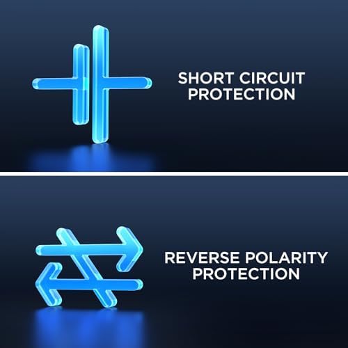 ?Comprehensive Battery Protection?Built-in diodes prevent reverse current flow, while multiple safeguards—including overcharge, overvoltage, reverse polarity, short circuit, and over-temperature protection—provide reliable battery protection and ensure stable charging performance in any environment.