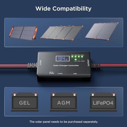?Perfect for RV & Emergency Backup?Designed as part of your RV essentials, this controller is perfect for camping gear, boating accessories, and off grid setups. Whether you’re traveling in your RV, exploring outdoors, or preparing for emergency power at home, it keeps your batteries safely charged and ready when you need them most.