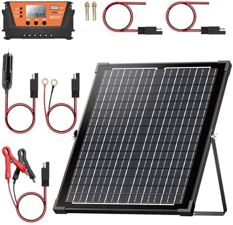 Package: 1 solar panel + 1 charger controller + 1 mounting bracket + 1 SAE convert alligator clamp cable(24 In) +1 O-rings convert SAE cable(24 In) + 1 single head SAE cable(24 In) +1 SEA convert cigarette lighter cable(24 In). We provide one year after-sale service and lifetime technical support. 7×24 hours After-sales service ensures that your question is answered within one day