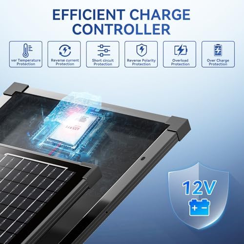 High Conversion Rate: This 20 W solar panel with monocrystalline A+ solar cell has an excellent cell efficiency of 23%-30%. Designed to charge and maintain 12V rechargeable batteries like LiFePO?, Lithium Ion, AGM, SLA, GEL, EFB, MF, etc. Keep batteries in charged for trailer, tractor, truck, boat, motorcycle, RV, car, lawn mower, water pump, gate opener, electric fence, etc