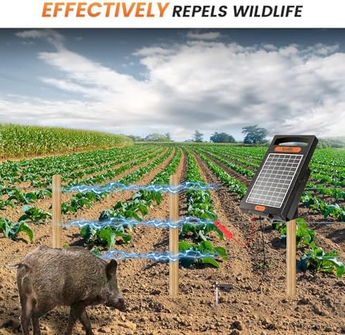 EFFICIENT ENERGY OUTPUT: With an output of 0.18 Joules, the solar fence charger delivers robust energy, which is essential for effectively deterring wildlife-raccoons, foxes & stray dogs, while keeping your livestock, pets & poultry safe in and predators out