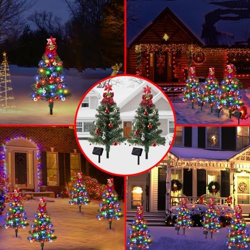Brightever Solar Christmas Tree Lights Outdoor Waterproof, 68LED Christmas Outside Decor Solar Powered with 8 Lighting Modes, Small Solar Christmas Decorations for Pathway Patio Landscape, Multicolor