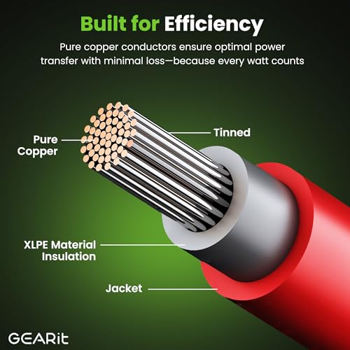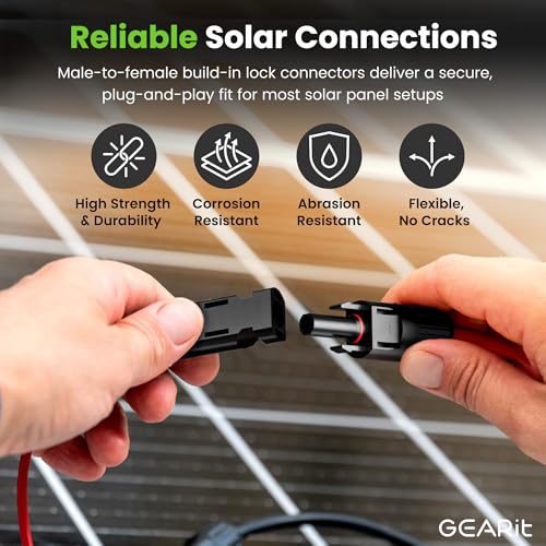 Upgrade Your Solar Panel System: Get one pair (1x black and 1x red) of GearIT’s Solar Extension Cable with Male and Female waterproof connectors, made of tinned copper.