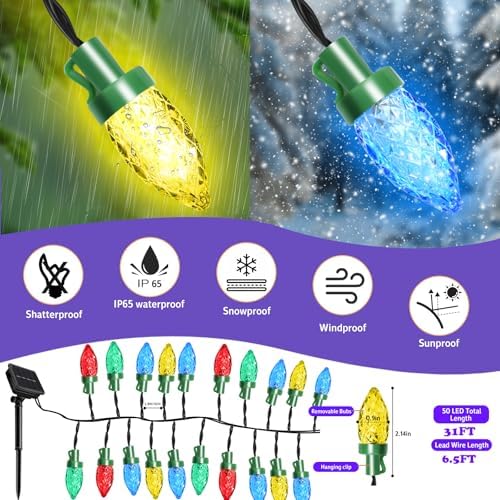 IP65 Waterproof Outdoor Solar String Lights– Solar lights for outside are made of durable weatherproof and anti-rust materials .This outdoor lights have an IP65 waterproof rating, it can work well on sunny, rainy and even snowy days
