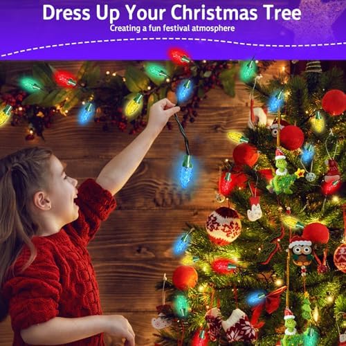 Quality material outdoor decor Christmas Lights–Indoor&outdoor string lights ,31ft/9.5m C7 ultra bright strawberry-shaped 50 LEDs perfect decorative for your every unique days.Green wire used in fairy lights is the perfect choice for displaying lights on bushes or a wide range of other natural backdrops