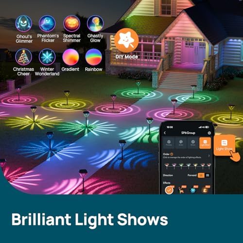 ?Light Shows, Music Sync & Scenes?Enjoy dazzling effects, preset scenes, and lights syncing to music. Color-changing landscape lights create the perfect mood for parties, holidays, and everyday ambiance.