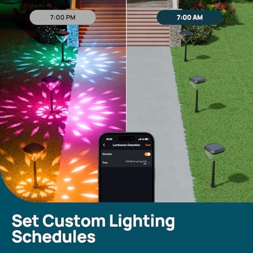 ?Schedule, Automate & Group Control?Manage up to 8 groups of up to 32 lights each. Flexibly control your solar garden lights with dusk-to-dawn lighting, customized schedules via manual app control.