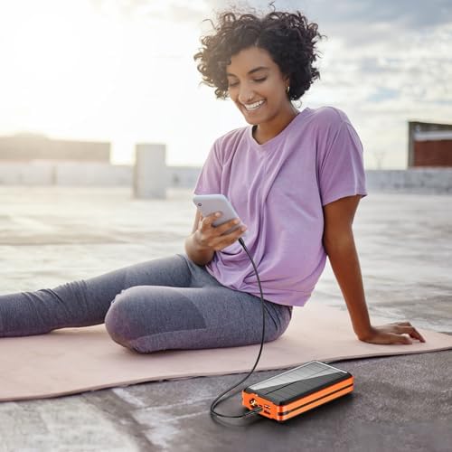 Price: $39.99(as of – Details) Product description Portable Charger Solar Power Bank Built in Cables With Wireless Charging and Flashlight Key Features: Wireless ChargingBuilt-in Cable5 Output ports & 3 input ports52800mAh big capacitySolar Power PanelBright Mode/ SOS/ Strobe Flashlight Note: In order to activate the battery, pls fully charged before fist use.For safety, Do NOT