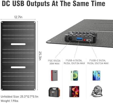 ?COMPACT & LIGHTWEIGHT Solar Panel Kit: The solar power bank size is 6.89×3.98×1.89in and the solar panel is 12.7*8.4*0.3in(Folded Size). The compact and lightweight features enable ZeroKor portable power bank and solar panel kit to require very little space.The Solar Panel with 1*DC Output 15V/2A max, 1*USB-A 5V/3A 9V/2A 12V/1.5A, 1*USB-C 5V/3A 9V/2A 12V/1.5A and 10-in-1 connector kit( NOTE: The junction box is not waterproof and please keep it dry)