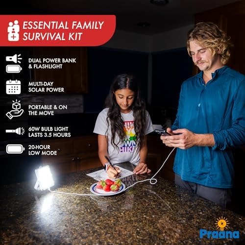 PRAANA 3-in-1 Solar Survival Kit, Emergency Flashlight with 5000mAh USB-C Power Bank & 7W Solar Panel for Power Outages, Camping, and Emergency Preparedness