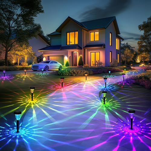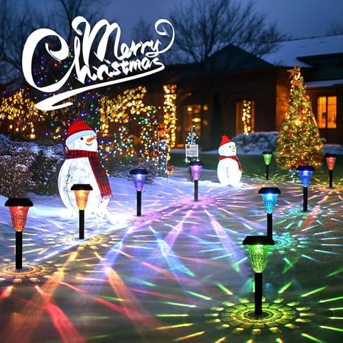 Solar Christmas Lights Outdoor Waterproof 12 Pack Solar Pathway Lights Color Changing Christmas Decor Garden Lights for Yard Patio Driveway Walkway Lawn Outdoor Landscape Decoration