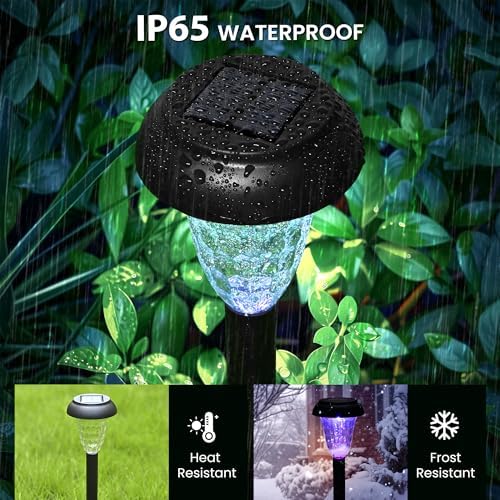 ?Color Changing Lighting Mode?Solar lights outdoor waterproof uses Multicolor LED lamp and high transparent acrylic material lampshade, projects colorful flower pattern, creats perfect outdoor landscape lighting for your garden, patio, lawn, walkway and yard