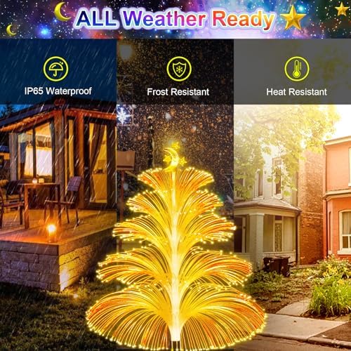 Solar Christmas Tree Lights Decorations Outdoor Waterproof 5 Layer Optical Fiber 7 Color Changing for Yard Pathway Outside Decorative Gifts Christmas, 3 Pack