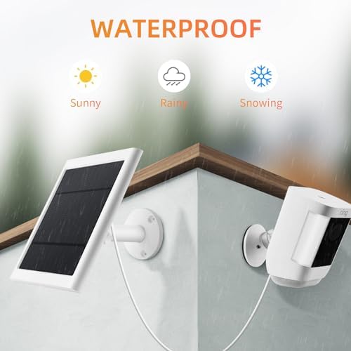 ?Easy to Use?Just Install the solar panel stably with screws and face to direct sunlight. The unique 360° rotatable mount and a 10ft (3m) cable give you the flexibility to maximise sunlight exposure. 6V 4W fast charging power, even on rainy days continuously charge your Ring security camera.
