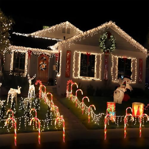 Upgrade 24 Solar Candy Cane Christmas Lights: Each candy cane has 5 large bright LED lights. It is long enough to decorate for yard, lawn, garden, walkway, driveway, balcony, tree, any place you want, the Christmas lights is bright to illuminate your home!