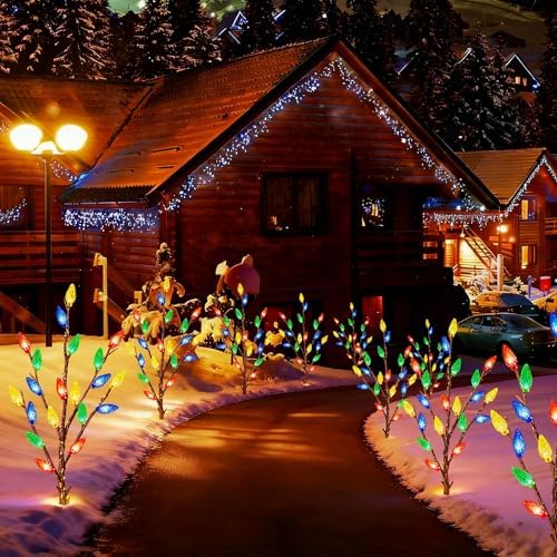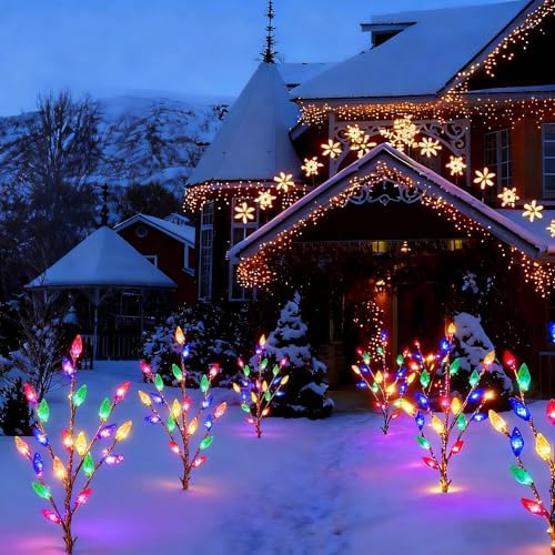 Upgraded Outdoor Christmas Decorations Solar Lights, 4 Packs 80 LED Multicolor Waterproof C6 Xmas Lights for Yard, Pathway, Front Porch, Patio, Cemetery, Grave Decor