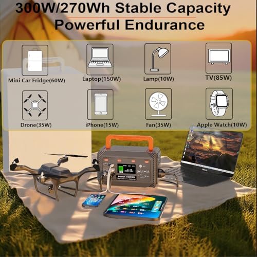 300W Portable Power Station,270Wh Camping Lithum Battery Solar Generator with 2 AC Output, USB-C PD 45W, Quick Charge Battery Pack for Home Use Camping Travel Emergency Hunting