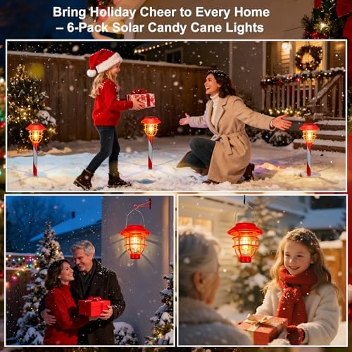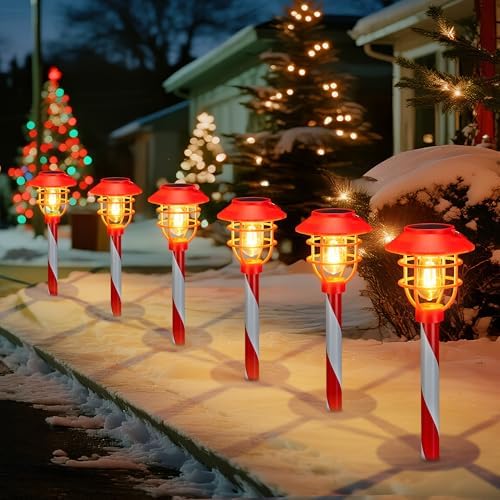 6 Pack Solar Pathway Lights Outdoor Christmas Decorations, Waterproof Candy Cane Christmas Pathway Lights for Yard, Walkway, Driveway, Garden Decor, Solar Powered Outdoor Lights for Xmas Gifts
