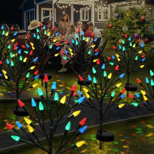 Christmas Outside Decorations Solar Pathway Lights-2PACK 40LED Multicolor C6 Strawberry Lights Xmas Decor,Outdoor Solar Christmas Lights for Garden Yard Path Party Decor