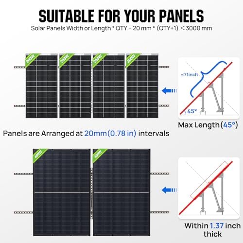 [Upgraded stability] When install the bracket, the distance between parallel vertical columns should be 59 in, and an upgraded support rod should be installed in the middle,It can bear 160lbs, solving the sagging or collapse problem in the middle of the solar panel