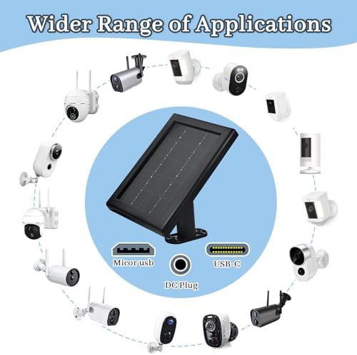 Price: $13.99(as of – Details) Product description The 5V ring solar panel charger can charge 98% of outdoor wireless camera and doorbell batteries. Wide range of solar panel Charger Ring stick up cam solar panel includes three different cable connectors (Micro USB, USB-C, and DC Barrel Plug Connector), making it compatible with 98% of outdoor