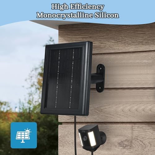 ? ?Fast Charging?Our solar charger is made of monocrystalline silicon material with high efficiency of photovoltaic conversion. Ring camera solar panel delivers 5V 3.5W of power, ensuring your camera stays charged with just a few hours of daily sunlight. Say goodbye to constant battery changes and the need for power adapters.