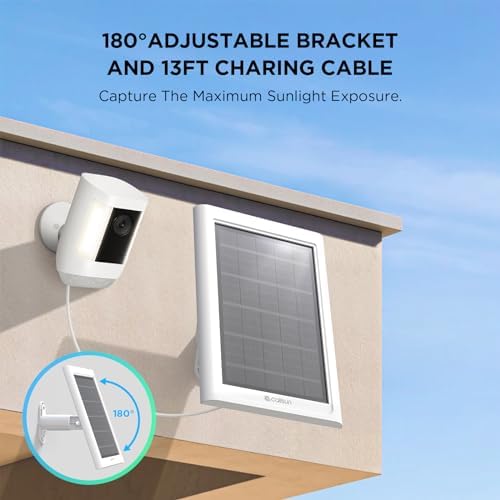 ?Simple and Versatile Installation?: The 180° adjustable bracket, paired with a 13ft charging cable, allows the solar charger for ring camera to capture sunlight from the ideal angle. Installing this solar panel for ring camera is also incredibly easy—simply position this for ring solar panels for outdoor cameras towards direct sunlight and connect the power cord to your ring cam battery’s DC 3.5mm charging port or USB-C port