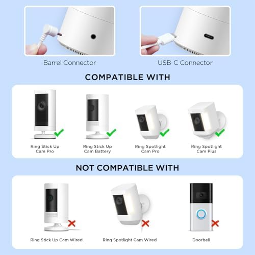 ?Tailored for Outdoor Ring Security Camera?: Our for ring solar panel is designed specifically for ring camera outdoor wireless. Compatible with various models, including Ring Stick Up Cam Battery, Ring Stick Up Cam Solar, Ring Spotlight Cam Battery, Ring Stick Up Cam Pro, Ring Spotlight Cam Plus, and Ring Spotlight Cam Pro, this for ring solar charger ensures a stable power supply for your outdoor surveillance needs, eliminating the inconvenience of frequent battery replacements